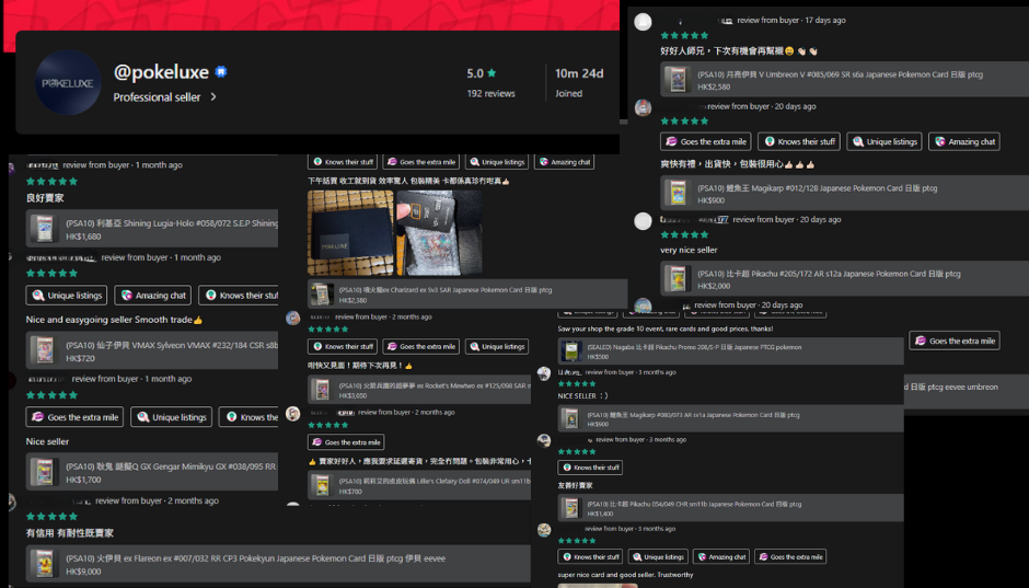Welcome to Pokeluxe! I'm a dedicated Pokémon collector with a passion for rare and graded cards, especially from the Japanese sets. My mission is to offer fellow collectors high-quality, authentic items to enhance their collections.